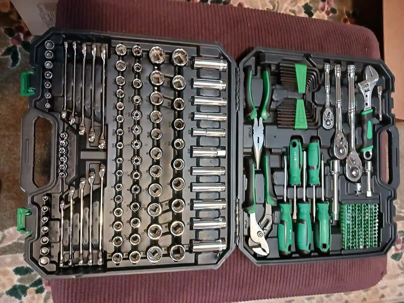 – Marco.POttimo acquisto. Cercavo un set completo per piccoli lavori in casa e questo ha davvero tutto. Le bussole e il cricchetto sono solidi e si sente che i materiali sono di buona qualità. Ora ho finalmente tutti gli attrezzi organizzati in un’unica valigetta.